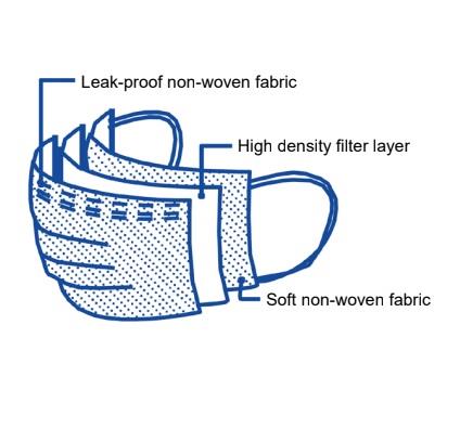 Pack of 4 disposable non-medical face masks with 3 layers for fluid resistence. Leak-proof non-woven and soft fabric with high density filter layer. One size 175mm x 95mm. Protects against non-toxic dust and contaminants. Recommended for maximum 2 hours of continuous use.