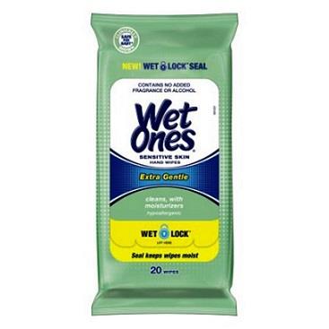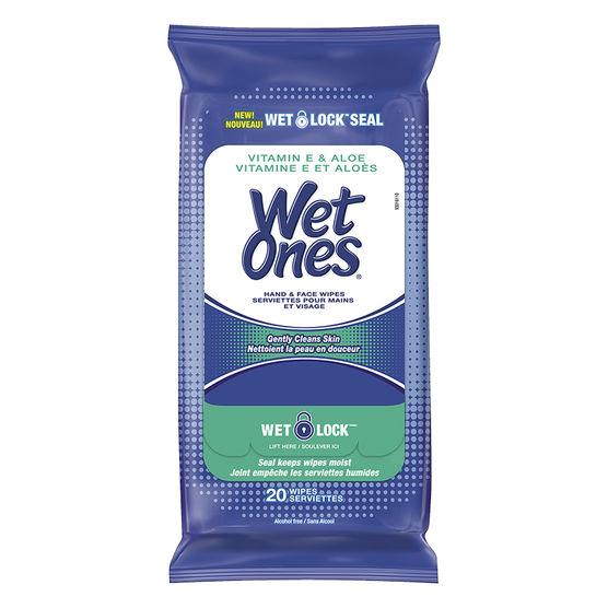 A handy, pocket-sized resealable pack of 20 Wet Ones vitamin E and aloe wipes. Specially...