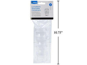 4 clear plastic jars in each package. All are the same size : 2" diameter...