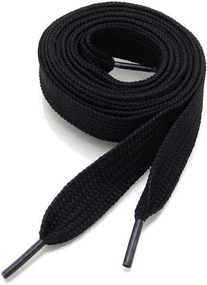1 pair, 54"/137cm Flat Black shoe laces. Heavy duty and great for boots.