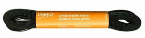 Jumbo braided elastic in black. 6mm x 5.75m. 62% polyester/38% rubber.