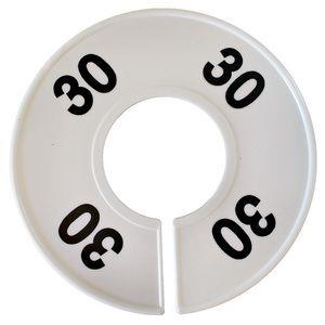 3-1/2", (89 mm), plastic donut, single. White with '30'.