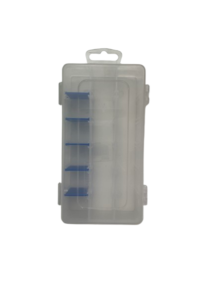 Adjustible, 6-18 compartments. Clear plastic. With "Zerust" anti-corrosion dividers, (stops rust). Measures 17cm x 9cm...