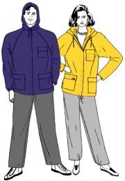 100% nylon on 100% rubber. 3 flapped patch pockets. Drawstring hood and waist. Snap closure...
