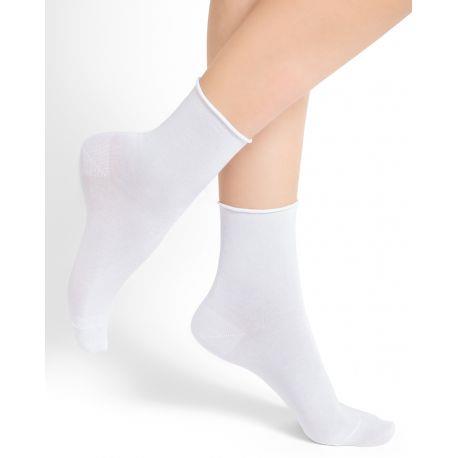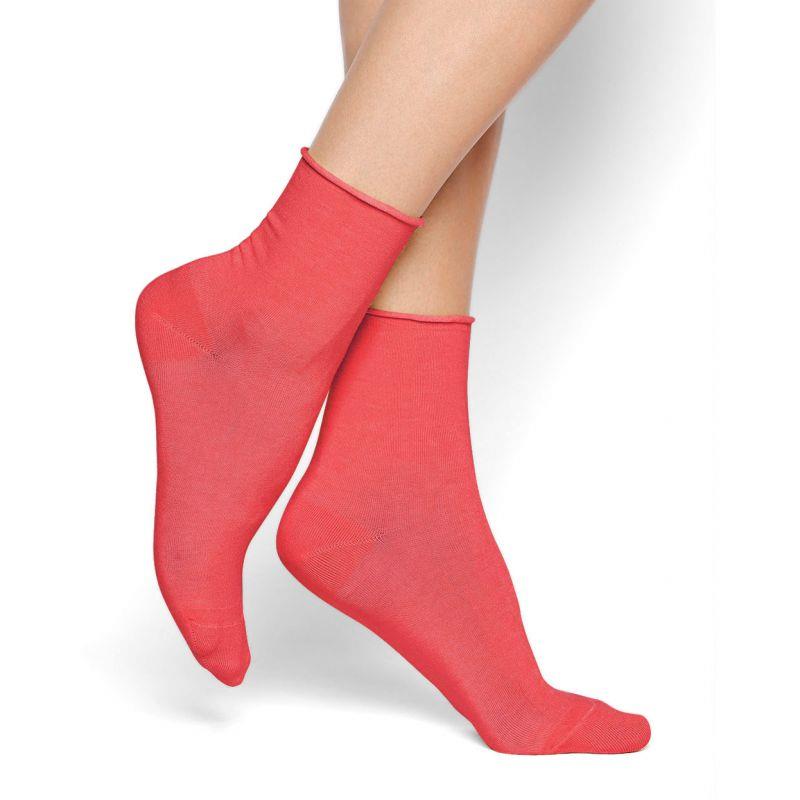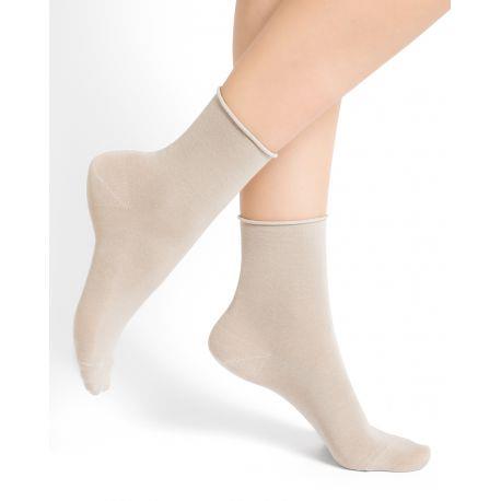 These trendy roll-top socks fit comfortably around the ankles without ever digging in. Soft, fine cotton feels like a second skin. Available in ten colours. Women's Sizes 5-7, and 7.5-10. Composition: 97% Cotton, 3% Lycra. Made in France. Comes in assorted solid colours. If you need a photo of the colour before purchasing, please let us know.