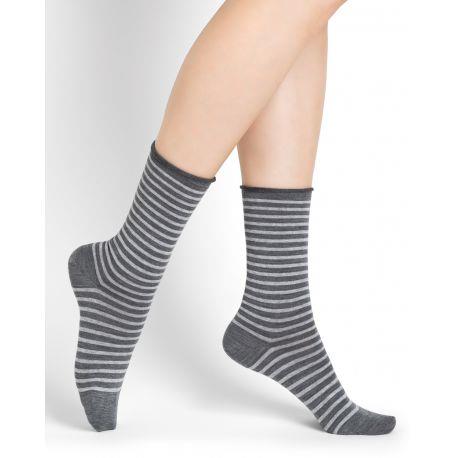 Finally some wool socks that don't itch! Our roll-top wool socks are knitted using Merino wool which is much finer and softer than traditional wool. The socks are lined with cotton for extra comfort against your skin. Bleuforêt has found the solution to itchy wool socks. It is also an excellent barrier against the winter cold! Made in France. Composition: 50% Wool , 48% Cotton , 2% Elastane. Comes in various striped patterns.