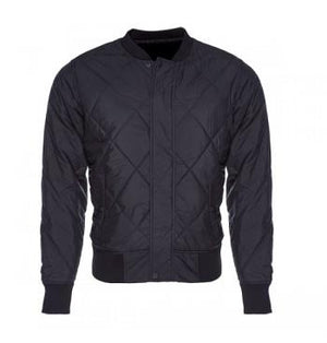 An update to the classic bomber in a warm, lightweight quilted jacket for men or women. Made with super-light PrimaLoft® insulation. the jacket is a perfect blend of performance and style. Pertex® Polyester Eco 100% recycled polyester outer fabric. PrimaLoft® Black Eco lightweight padded insulation, made from 60% post-consumer recycled content. Water resistant and breathable. One-way front zipper with storm flap. Two front pockets with dome-snap closure. Black leather Cintamani logo patch on sleeve.