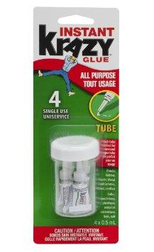 0.5 ml (x 4) single-use tubes. Krazy Glue Single-Use Tube is ideal for office, home and craft projects. Each tube contains enough glue for one application. Twist the self-piercing cap to open, apply Krazy Glue and throw away. Convenient storage case provides organization for kitchen drawers and workshops and is great for on-the-go. Tape is suitable for use on plastic, metal, wood, rubber, glass and more.