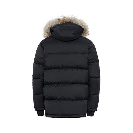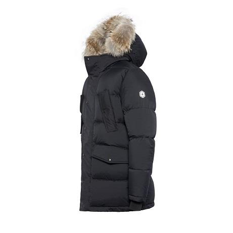 The Lutse Down Jacket by Quartz Co. is a classic unisex semi-slim fit coat with the warmth for standalone use in temperatures plummeting to -30°C. The jacket is padded using 750 fill power of 100% Canadian white duck down. A quality 80% down to 20% feather fill-ratio provides lofty warmth, and Quartz protects the insulation with an ultra-fresh antimicrobial agent. Adjustable fixed hood with removable Canadian coyote fur. Two-way zipper closure and snap button placket at front. Also has 4 outside pockets and storm cuffs. Made in Canada. Comes in Black.