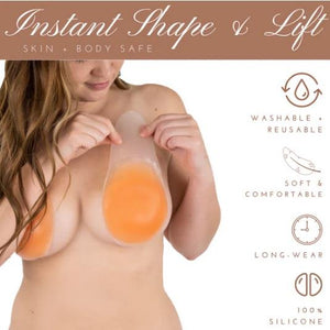 For a strapless top, you pull the lift tab sideways under your arm… they are adjustable depending on the style of your top and that gives you a lot of flexibility on how you use them to shape your breasts. They mold to your form and will stay securely in place!