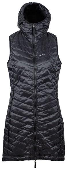 A long warm hooded vest which covers your back and behind! Perfect under a shell as warming insulation or as a stand-alone garment. Tight hood and formfitting, The Debbie earns compliments in the mountains and city alike. 2-way YKK zipper in front. 2 zippered hand pockets (fits an iPhone 7). Lycra piping around the hood and armholes. Rear waistline elastic for a perfect fit. SKHOOP flower embroideder on the hood. 100% nylon mini ripstop shell. 60g synthetic insulation. Environmentally friendly DWR repels dirt and moisture.