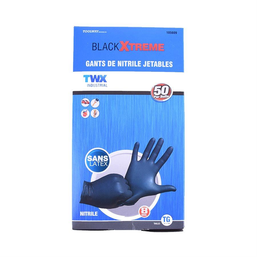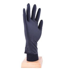 50 pack of black nitrile gloves. Provides light duty protection. Resists many household detergents, hair colouring, paints and stains. Stretch fit for flexibility. Resistant to snags, nicks and abrasions. Rolled cuff for easy removal. Reversible for longer wear. Latex Free.